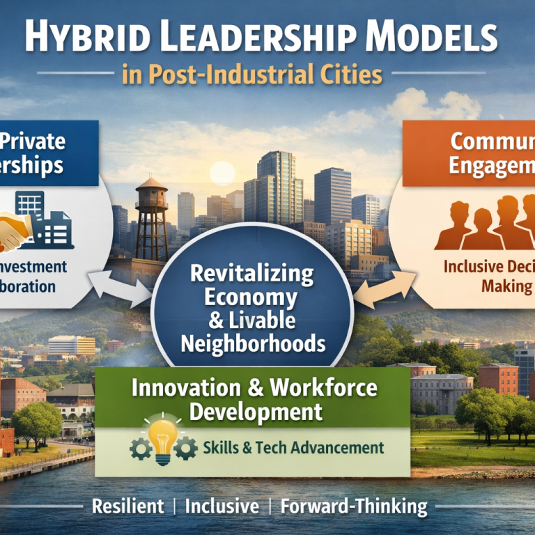 Public policy is a powerful instrument in shaping the trajectory of post-industrial cities, but its effectiveness is ultimately determined by the tone and discipline of leadership. This white paper delivers evidence-based analysis of leadership influencing urban transformation, workforce evolution, and sustainable growth, while examining how leadership approach, governance, and decision-making directly affect outcomes. Together, these insights equip leaders to align strategy with greater clarity, credibility, and impact.