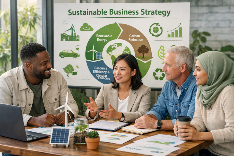 Sustainable business strategy focuses on achieving long-term success while reducing negative impacts on the environment and society. It integrates environmental, social, and economic considerations into business decisions, encouraging companies to think beyond short-term profits and consider their impact on people and the planet.